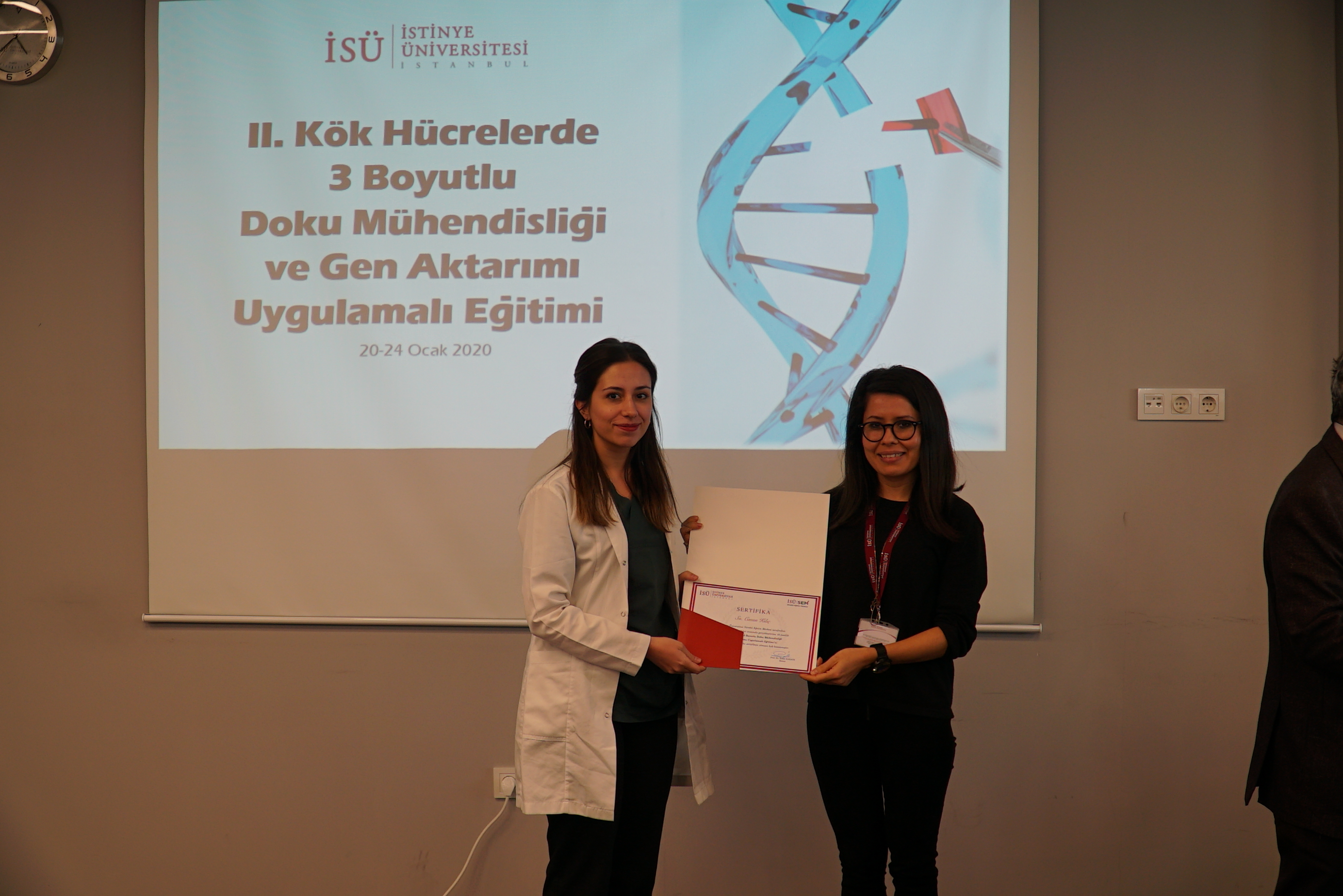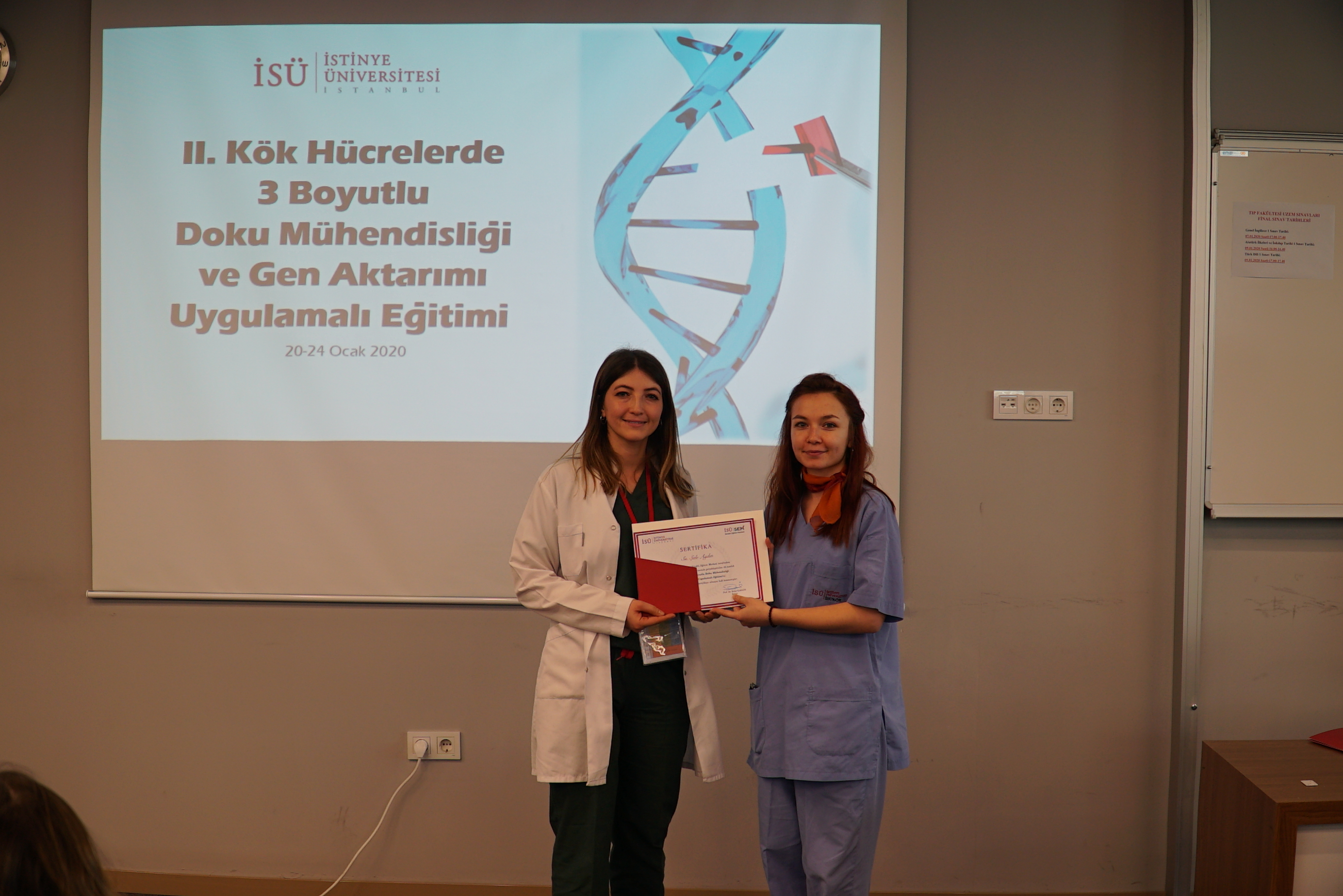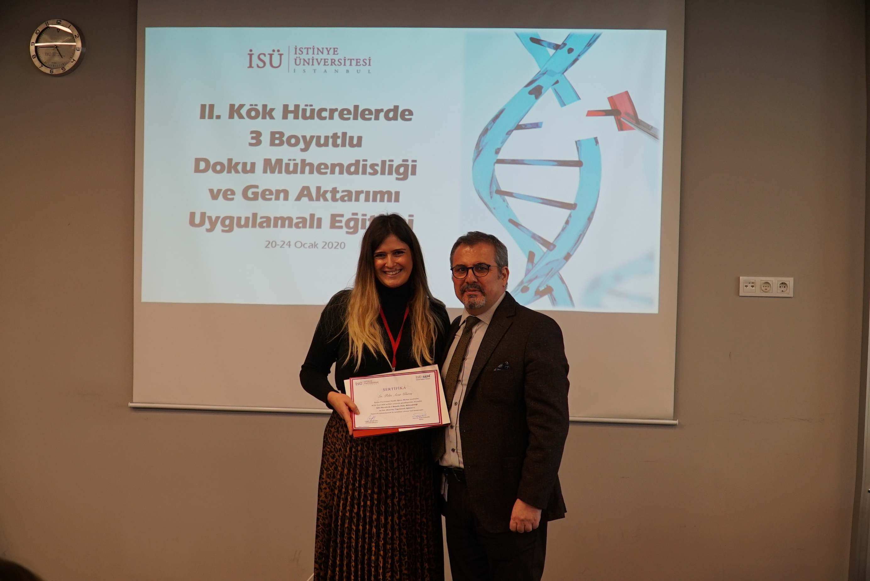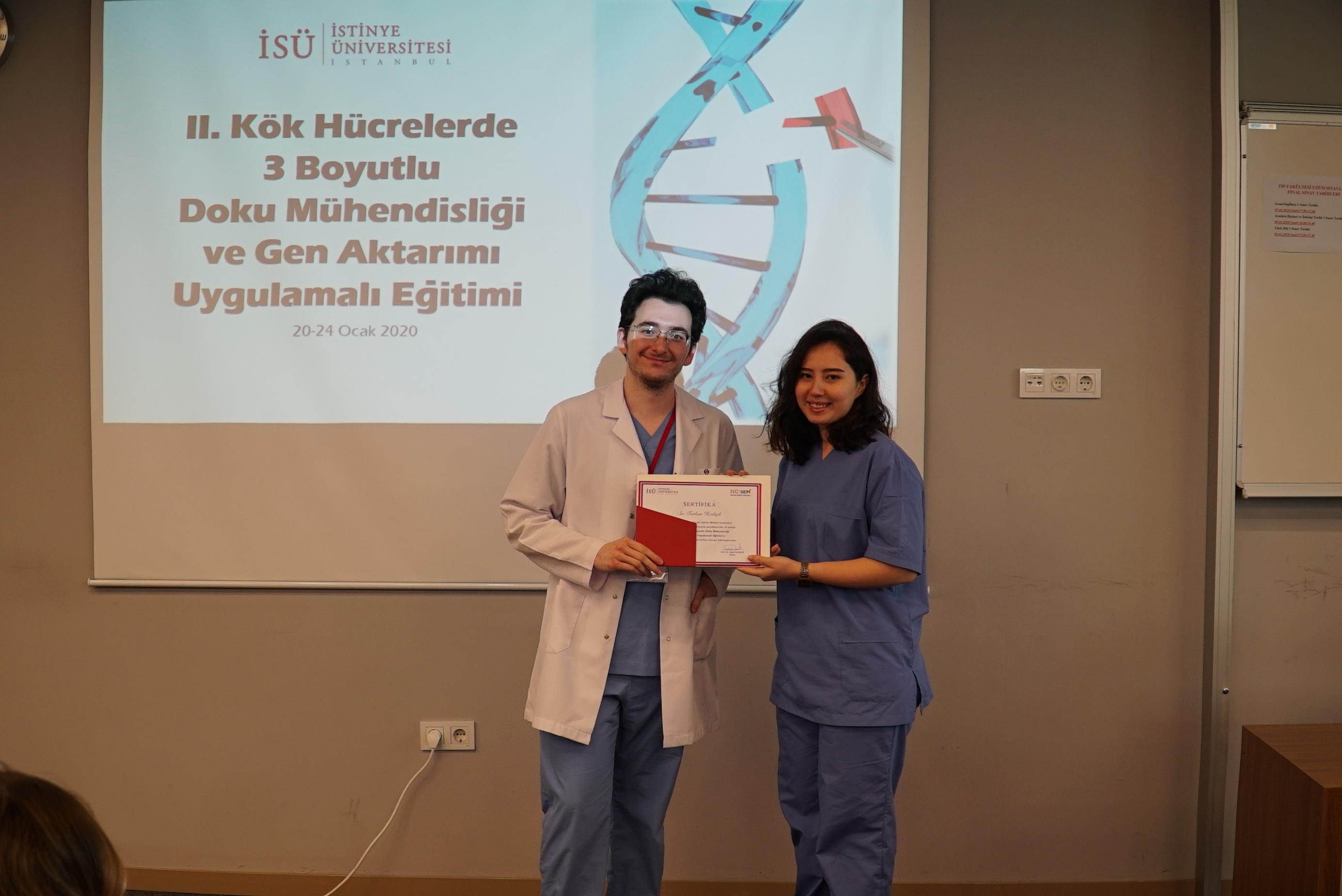 20 Ocak 2020 tarihinde başlayan ve 5 gün 40 saat süren ‘’Kök Hücrelerde 3 Boyutlu Doku Mühendisliği ve Gen Aktarımı Uygulamalı Eğitimi’’ sertifika töreni ile sona erdi.