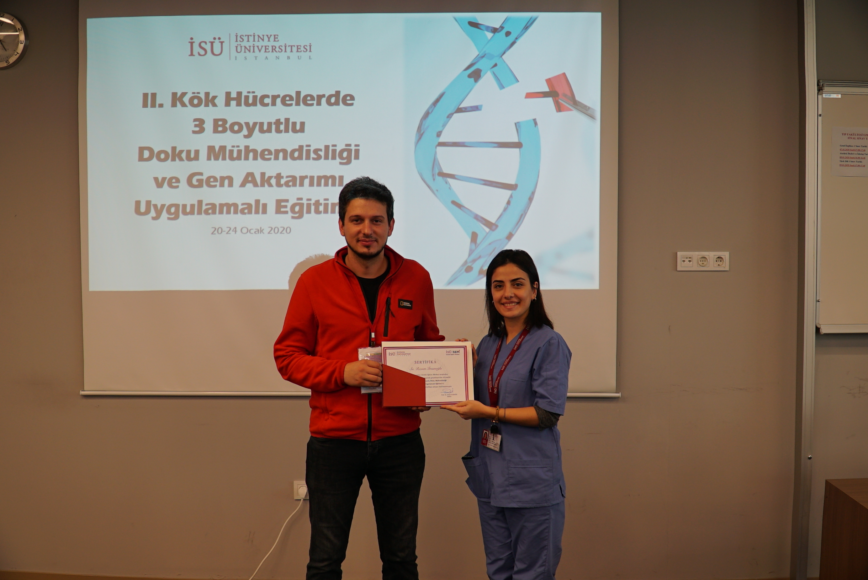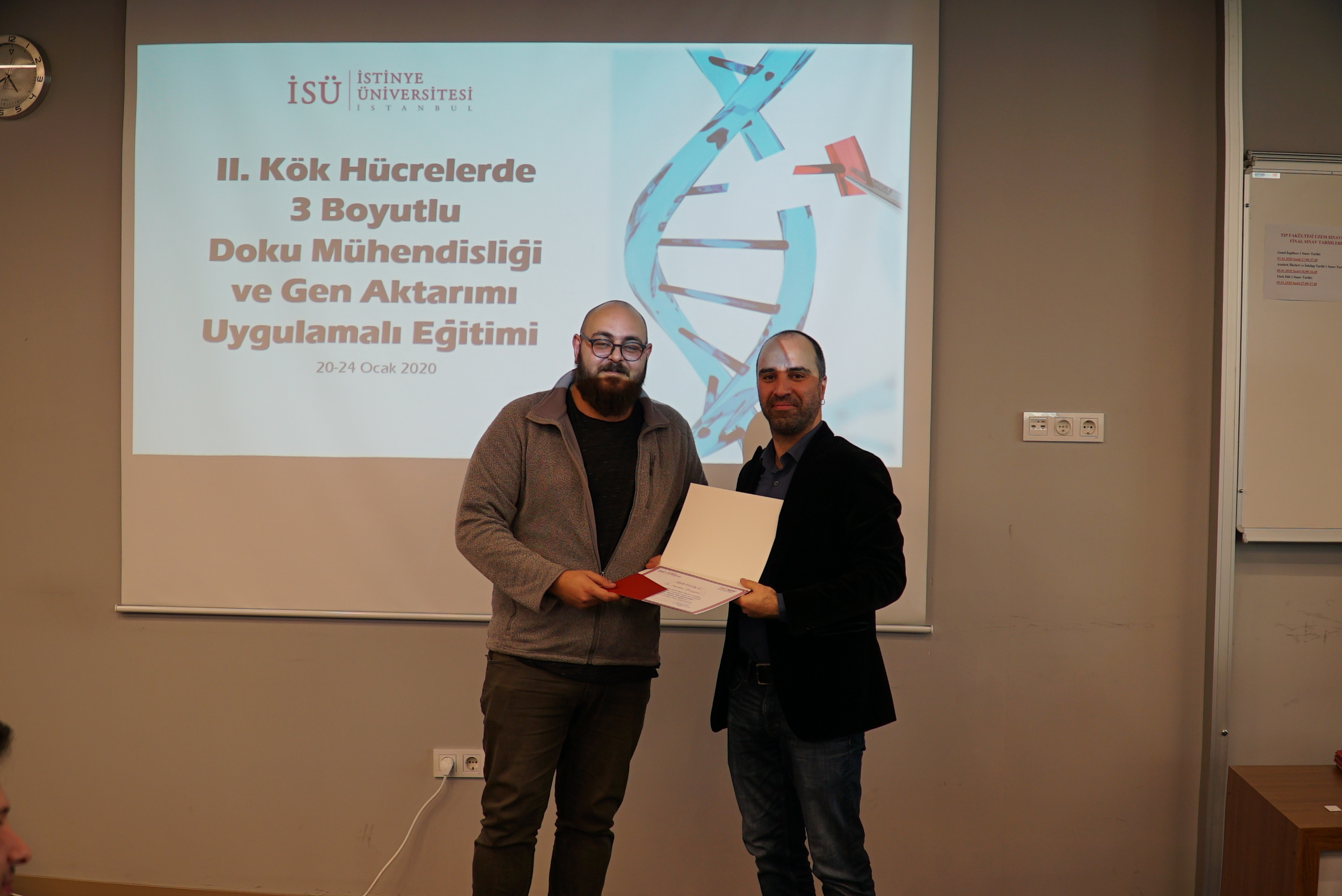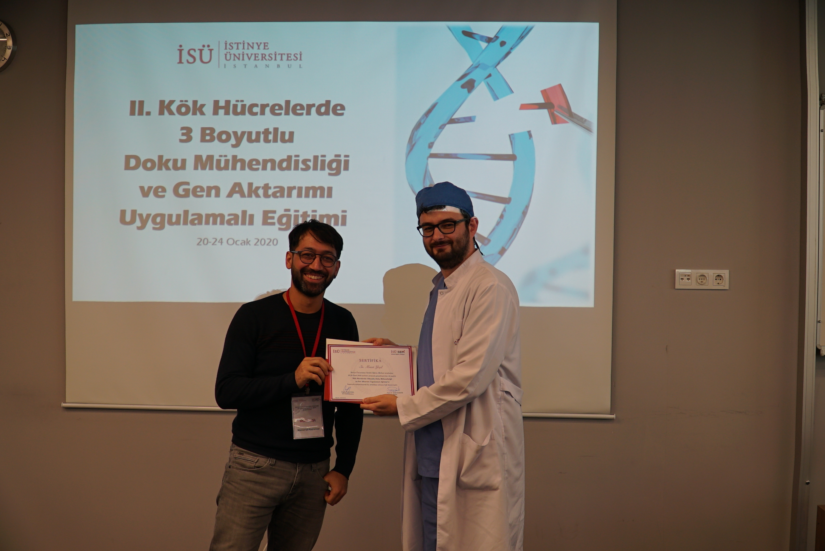 20 Ocak 2020 tarihinde başlayan ve 5 gün 40 saat süren ‘’Kök Hücrelerde 3 Boyutlu Doku Mühendisliği ve Gen Aktarımı Uygulamalı Eğitimi’’ sertifika töreni ile sona erdi.