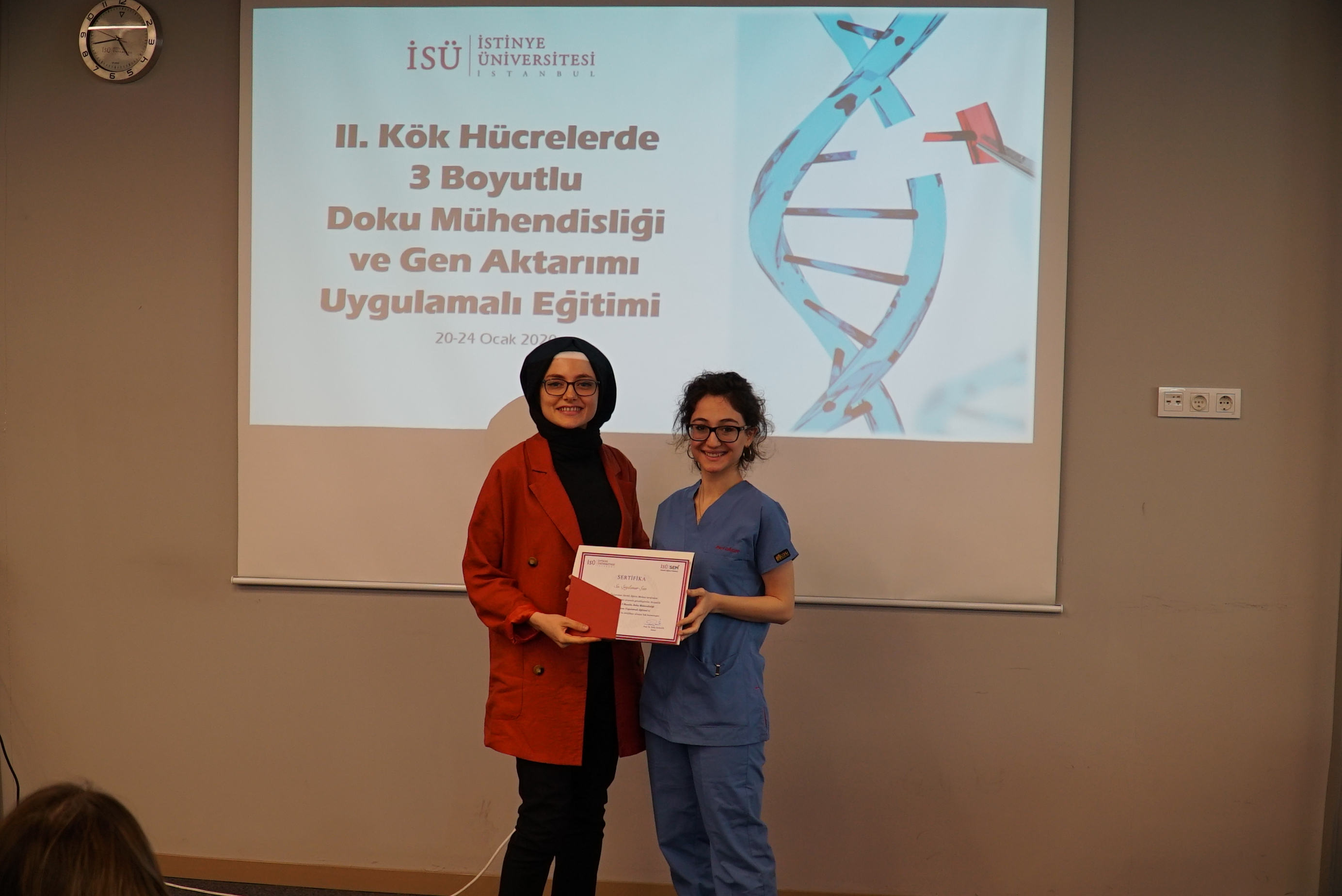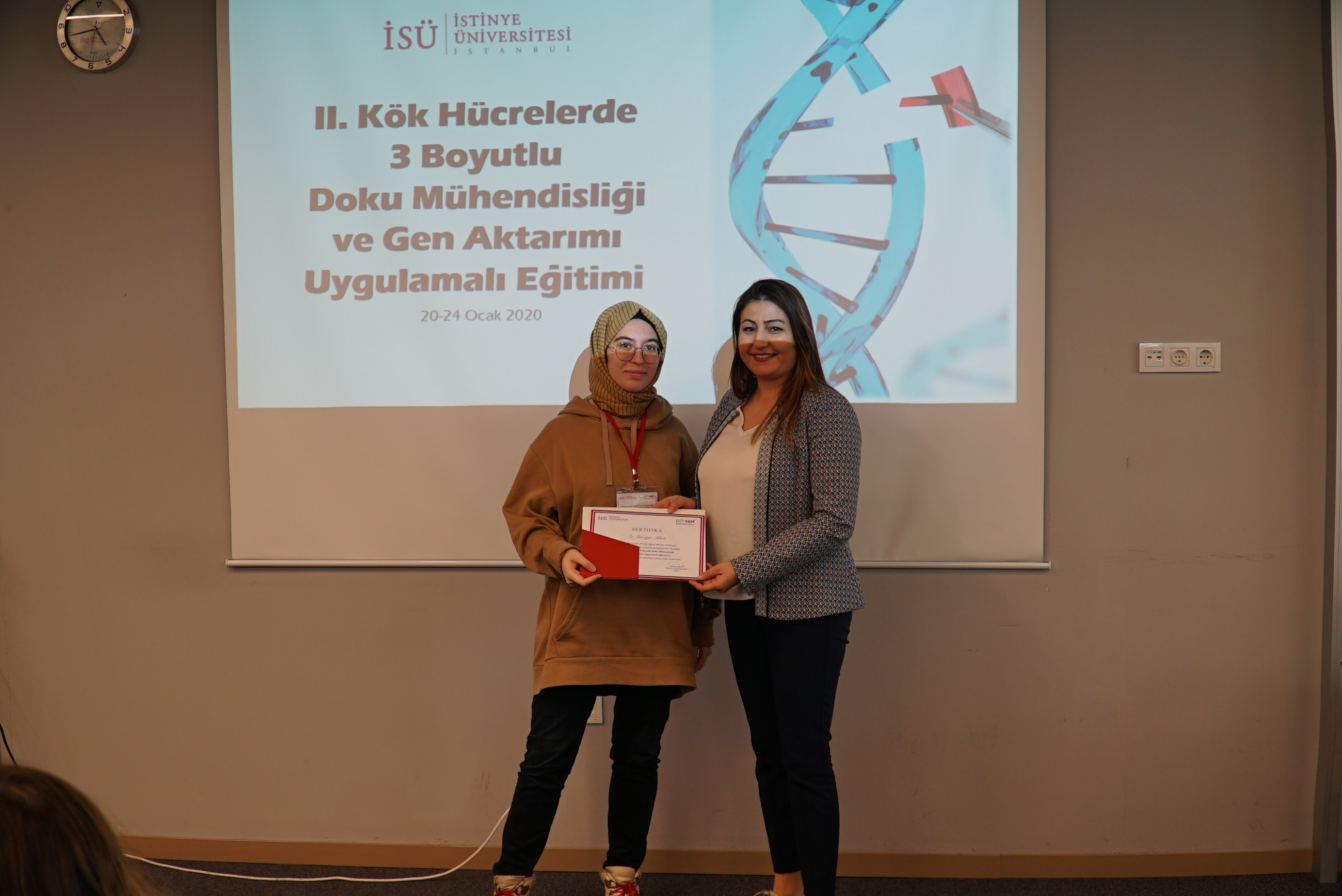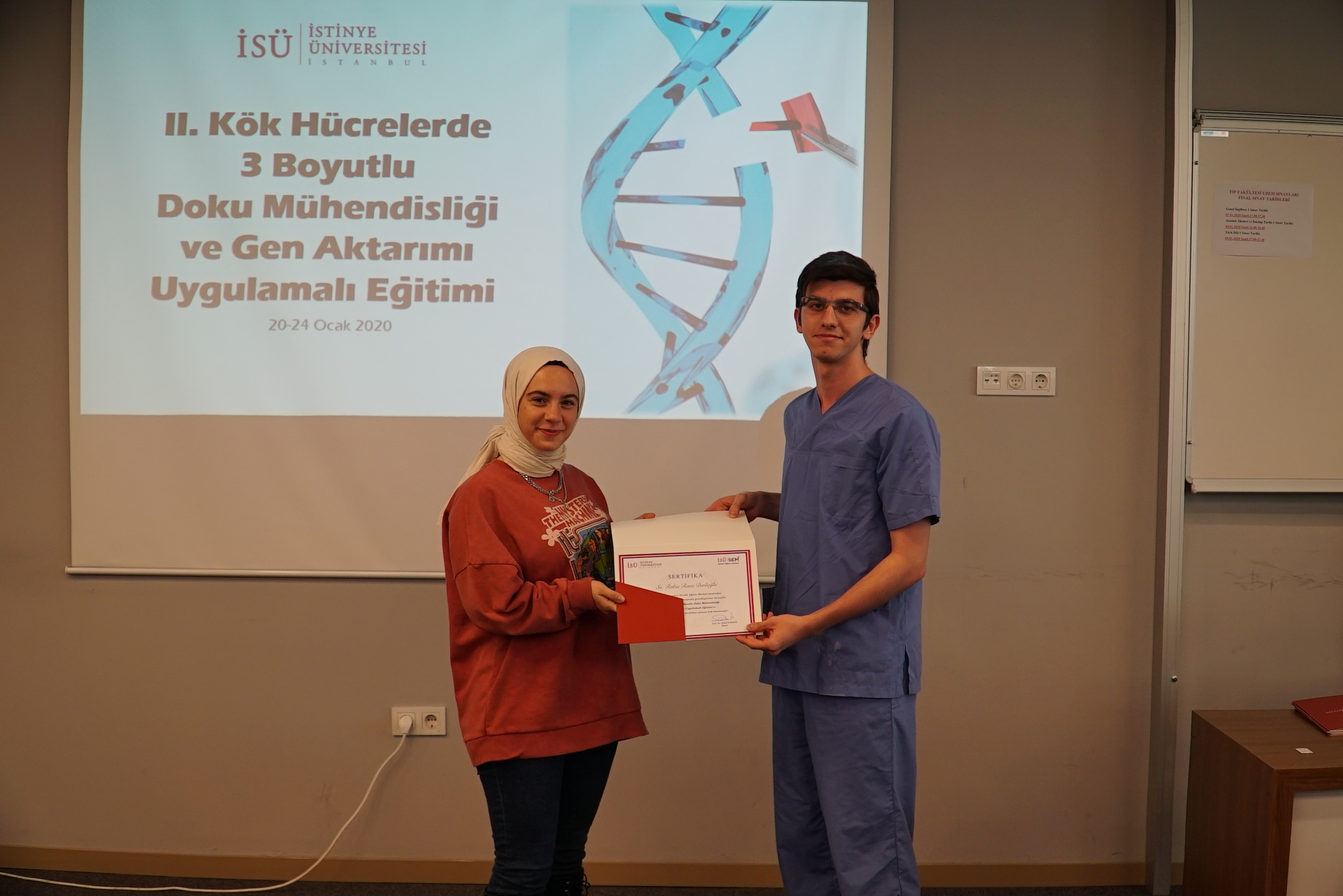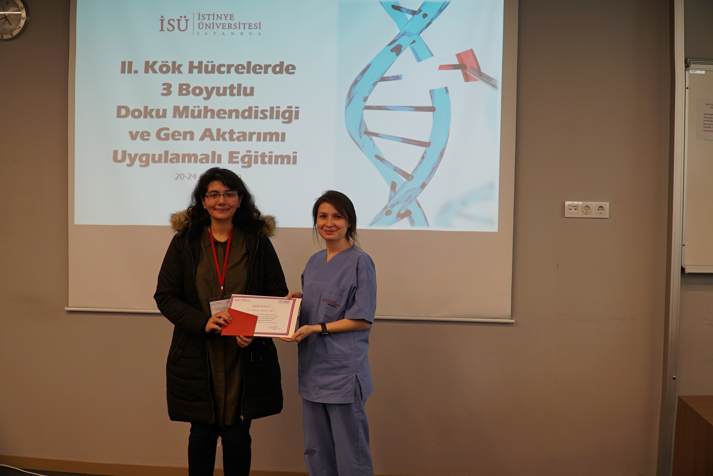 20 Ocak 2020 tarihinde başlayan ve 5 gün 40 saat süren ‘’Kök Hücrelerde 3 Boyutlu Doku Mühendisliği ve Gen Aktarımı Uygulamalı Eğitimi’’ sertifika töreni ile sona erdi.