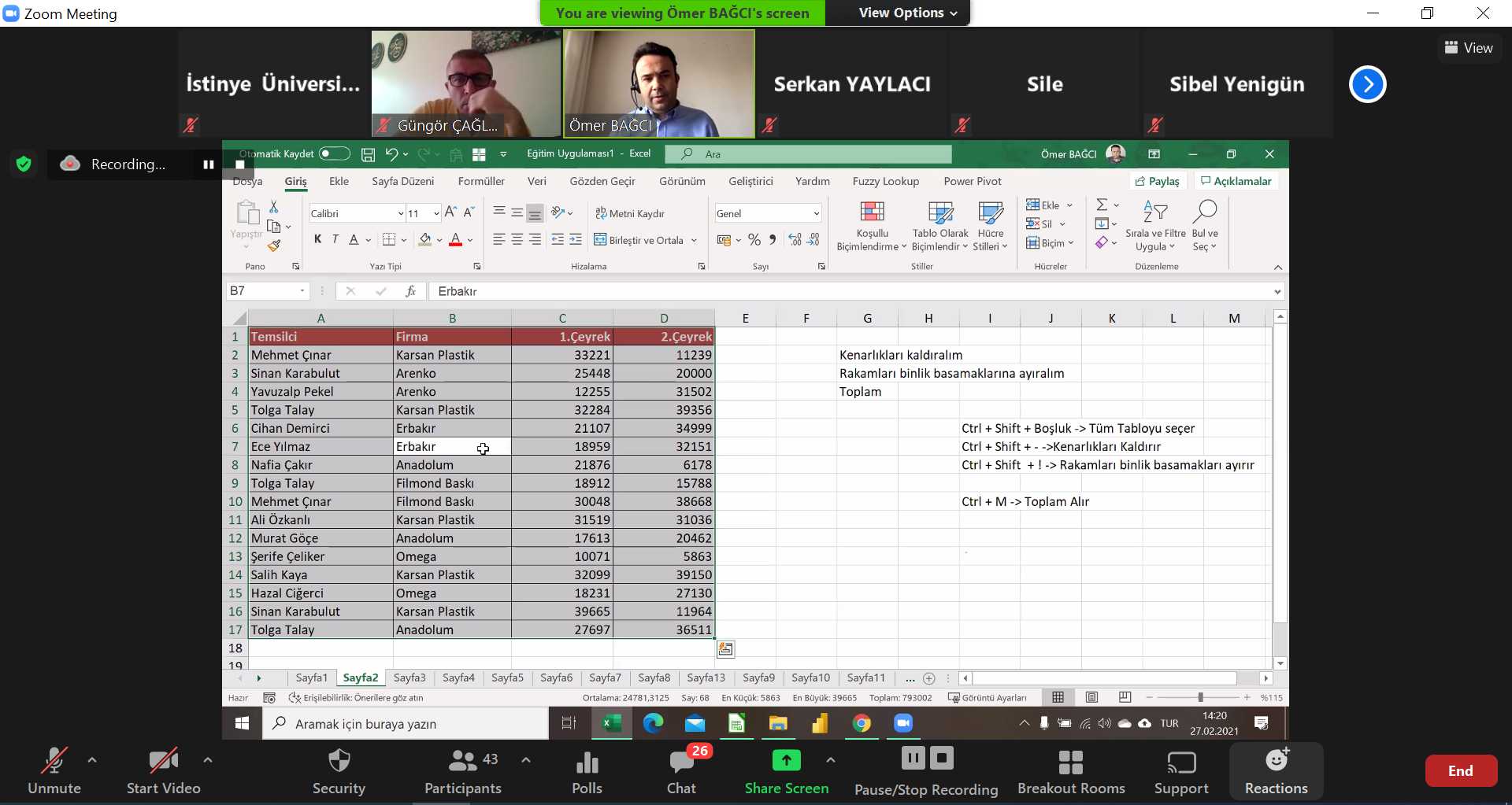 ‘’İleri Düzey Excel’’ gibi pek çok kitabın yazarı olan Ömer Bağcı eğitmenliğinde gerçekleşen Excel Eğitimi İstanbul İl Sağlık Müdürlüğü çalışanlarının katılımıyla 27-28 Şubat 2021 tarihlerinde online olarak gerçekleşti.