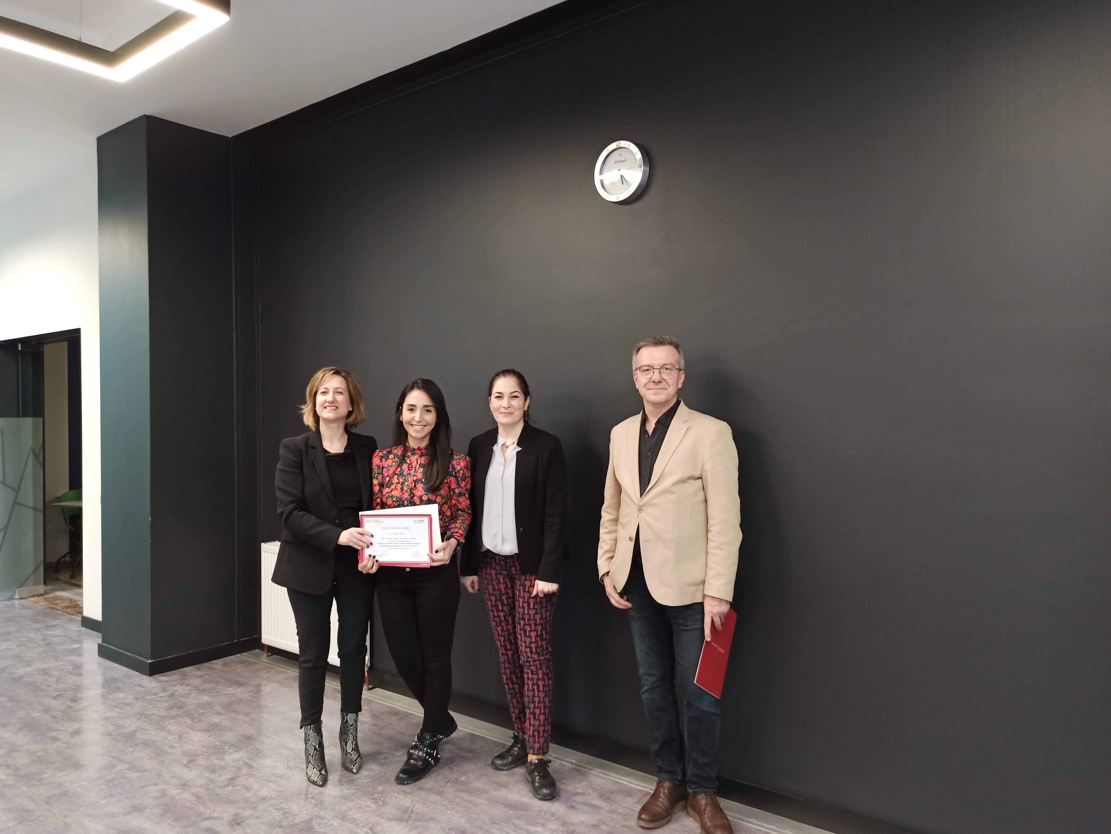 13-14 Şubat’ta İstinye Üniversitesi Güney Kampüsü ev sahipliğinde gerçekleştirilen Kalite ve İş Sağlığı Güvenliği Çalıştayında İstinye Üniversitesi İktisadi ve İdari Sosyal Bilimler Fakültesinden Dr. Öğr. Üyesi Tayfun Utaş Hastanelerde Günlük Yönetim ve Kalite İyileştirme Teknikleri (Daily Management) Eğitimini, İSÜSEM Eğitmeni Ümran Tunçbilek Çelebi ise İletişim ve Farkındalık eğitimi verdi.